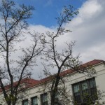 Today’s late afternoon dog walk mostly takes in the green spaces of the EOU campus. We also visit EOU’s Stenard Memorial Garden, where we note the nearby window through which Kim once escaped her middle school class (as witnessed and told to me by Jenna Dorn). On the way home, we walk by the demolition (under protest) site of the former anti-domestic violence center, Shelter from the Storm, and also pass by my old office, now occupied by Grande Ronde Recovery and situated as our next door neighbor. And we make it home before rain.