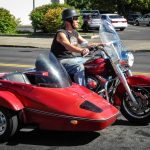 Later on after we met in L.A., Lee and I sometimes photographed dogs and their people, noting the cliched observation about the resemblance of dogs and their owners. I continue that practice just for the fun of it during periods of photographic boredom or when encountering a particularly notable example. Yesterday, driving south on Highway 11, we followed for some miles a car that initially attracted my attention (in keeping with my from-childhood interest in cars, often documenting while riding shotgun on road trips). It was a rather rare circa 1960 Rambler Cross Country, which had been modified by lowering, wheel/tire treatment and possibly other “resto-mod” features. Then Kim pointed out that a huge dog, possibly a St. Bernard, occupied the rear seat. Some windshield photography follows: