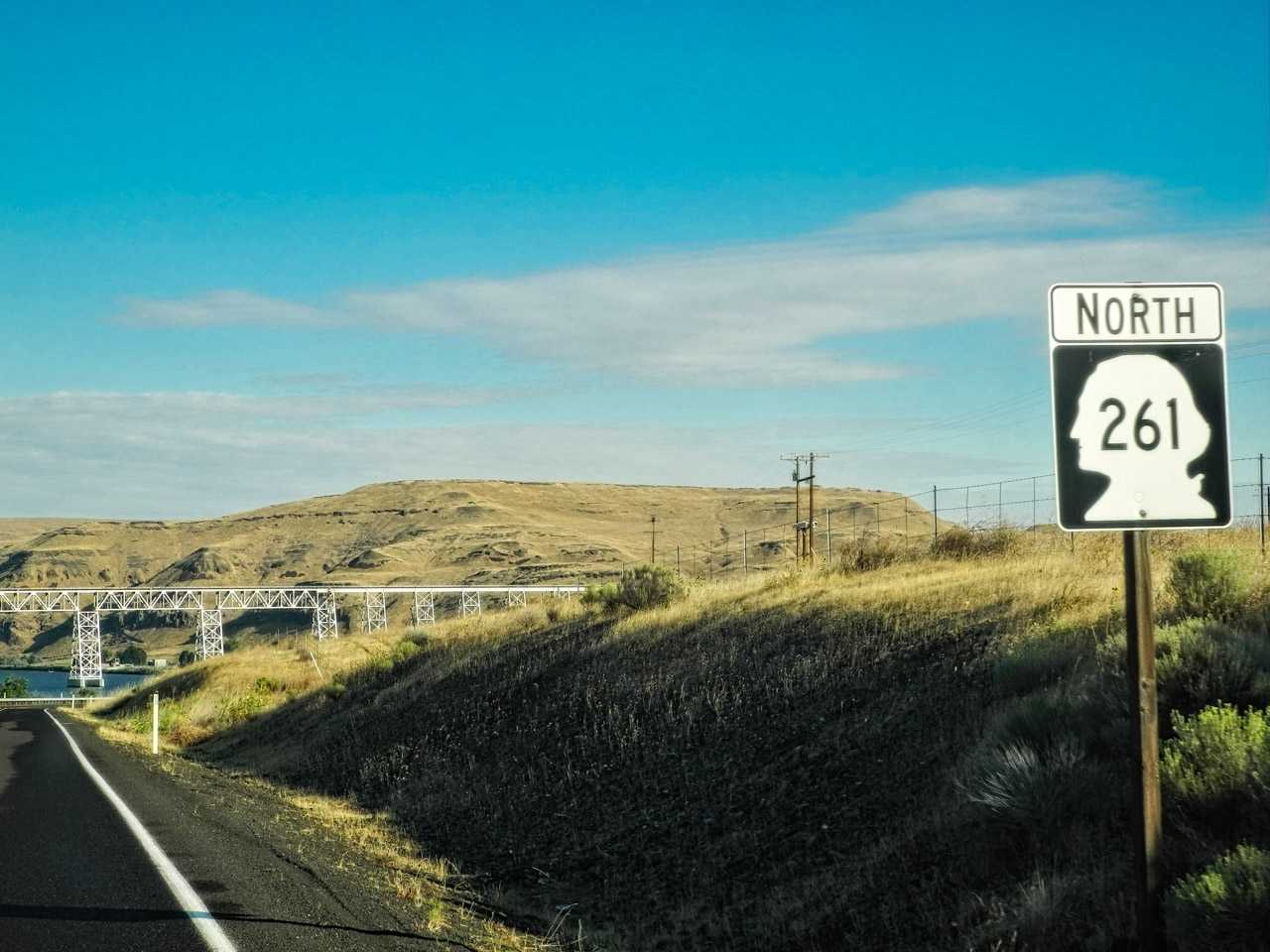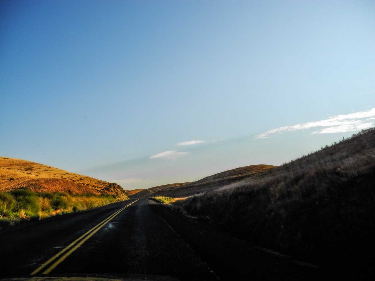 On the last full day of Ivi’s visit, we take off in light early morning rain for the 55-mile trip northward to Palouse Falls State Park. As we wind through the back roads (Hwy 124), the post-dawn sun explodes with a seldom-seen intense gold, combining with the subtle tint of the glass for a remarkable bit of windshield photography color and ambience.